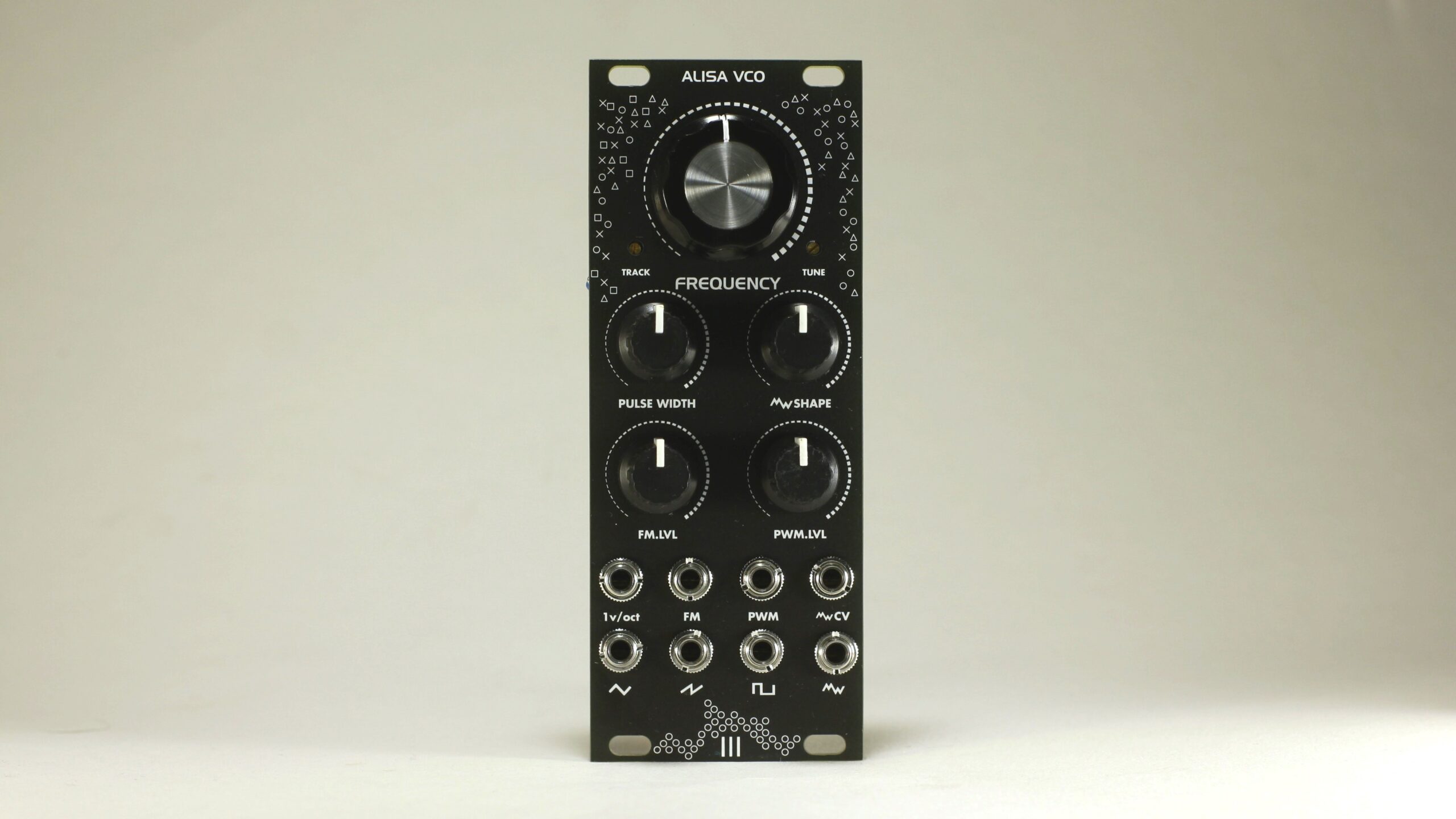 Alisa VCO offers three classic waveforms Triangle, Ramp and Pulse. In addition to those waveforms there is a waveshaped signal output that serves as a fourth waveform. Waveshaper is the most well known part of Alisa 1377. In Alisa VCO the shape of this signal can be manipulated with a knob or with Control voltage.